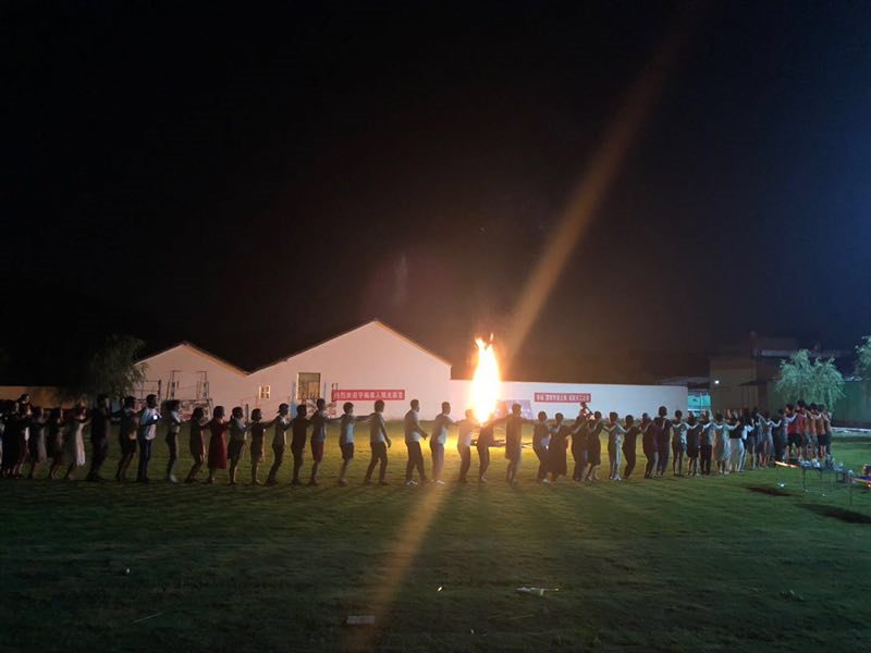 夜幕來臨時,晚上同事們來到了山間草地上串起燒烤、唱起歌。篝火晚會,處處歡聲笑語。原本寧靜的鄉(xiāng)間夜晚回響著同事們陣陣歡聲笑語。